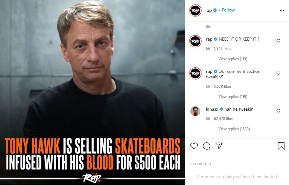 Nah He Tweaking Instagram Comments Meaning Explained. Instagram account rap posted a photo of Tony Hawk with the caption. All saying the same thing and theyre saying the phrase Nah he tweakin so where did this phrase originate from whats going on with the Instagram comments what is going on Im going to explain that today for you guys some people have speculated that it started because of lil knights xs comment he said the phrase.